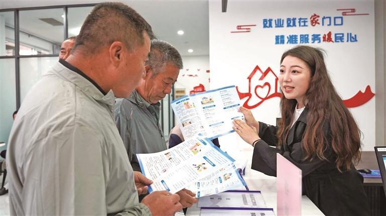 橫山區(qū)零工市場工作人員為求職者講解政策信息。