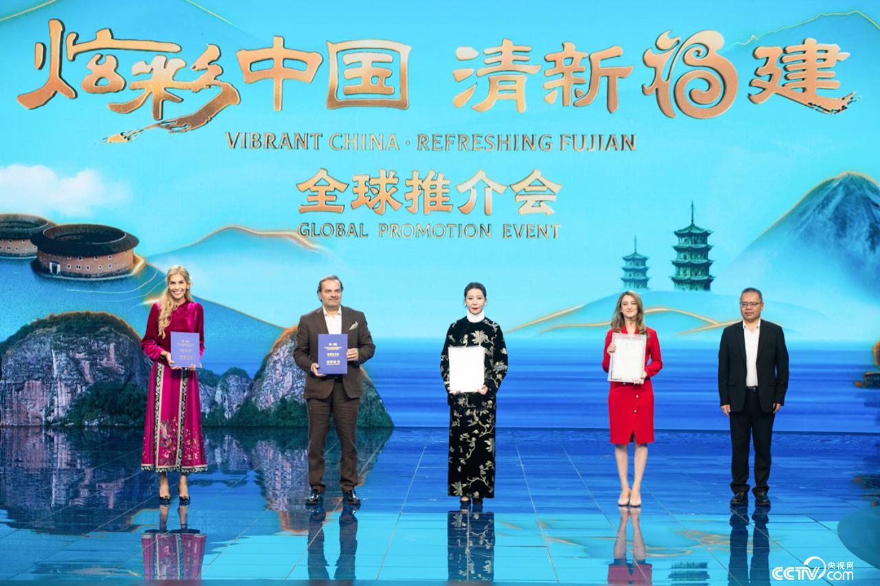 現場為全球知名藝術家代表——美國歌劇演唱家卡拉·卡納萊斯,意大利視覺藝術家、導演恩里克·卡斯蒂列尼,“清新福建”全球文旅推介官代表——環球旅行自媒體博主楊寶迪和自媒體博主于中美頒發證書,共同開啟一場“清新福建”的國際文旅交流新航程。